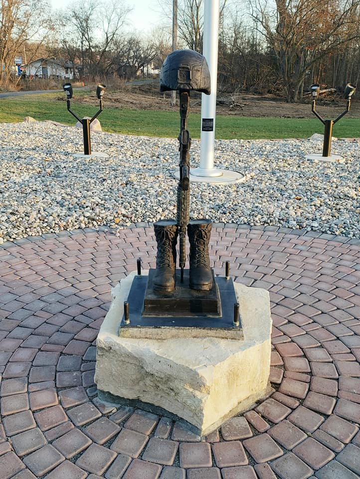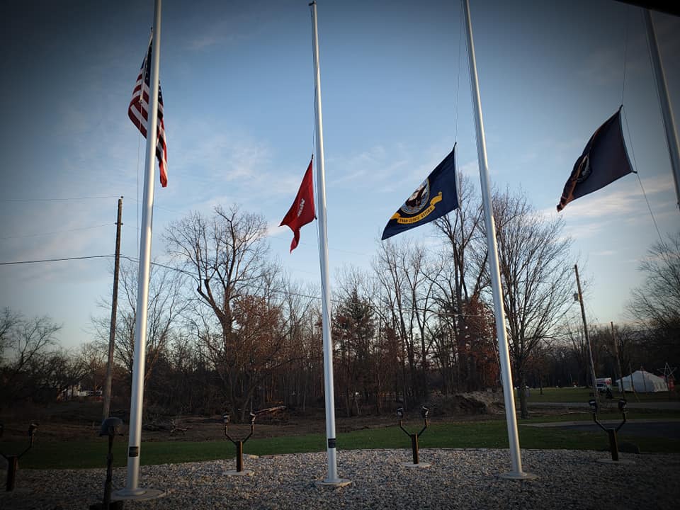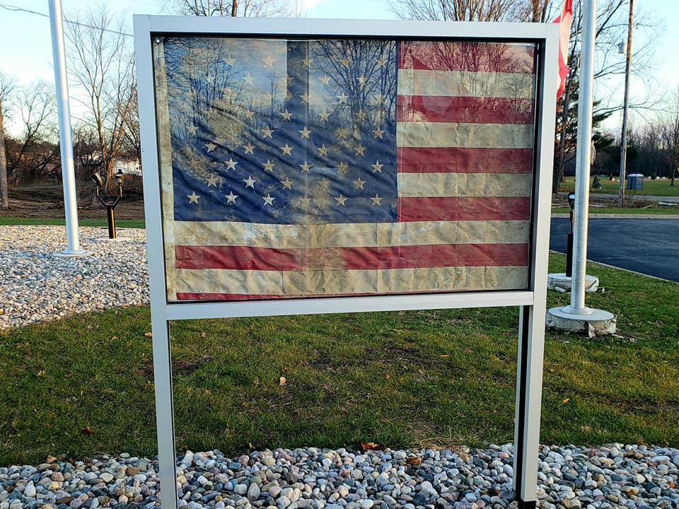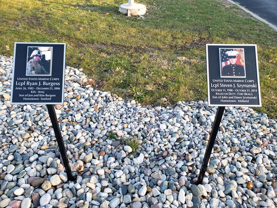 In May 2020, the Nation watched as two dams broke in Mid-Michigan. Several towns were impacted as the flood waters washed away homes, businesses, lakes, and rivers. The town of Sanford is home to the Sanford Flag Memorial Monument. This memorial was built and dedicated by the Burgess family in honor of their son, Marine Lance Corporal Ryan Burgess. LCpl Burgess was killed in action in Iraq in 2006. Unfortunately, the dam breakage completely washed the memorial away. In July 2020 our chapter collected bottles and bottle returns to raise money to go towards the rebuild of the memorial. We were able to raise $800 to send to the Ryan Burgess Foundation to be used in the rebuild project. The Sanford Flag Memorial Monument was completed and rededicated in May 2021.